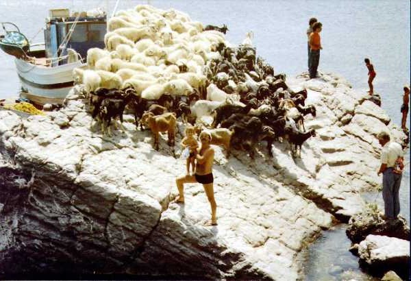 Roads leading to the town did not exist until the early 1970's when a large portion of these were built by the villagers themselves. Kakia Skala is the name of a ravine where the villagers dangled by ropes from breath taking heights so that sections of the two towering mountains could be removed by dynamite. A stone bridge connecting the two mountains was built by hand and wedged into the spaces created by the dynamiting. Later, the road was smoothed out by pick and shovel. These valiant efforts resulted in a road that connected Spoa with the southern, more populated portion of the island.